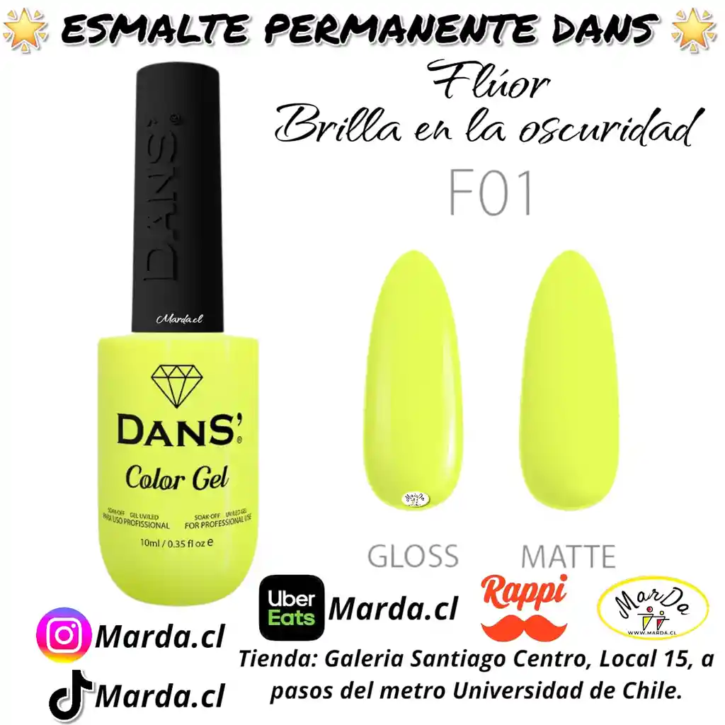 Es un tipo de manicure que se realiza con esmaltes permanentes Dans. Se fijan con lámparas UV/LED. También se puede realizar la pedicure con el mismo método y con unos resultados extraordinarios y gran durabilidad. COLOR F01 - FLUOR - BRILLA EN LA OBSCURIDAD