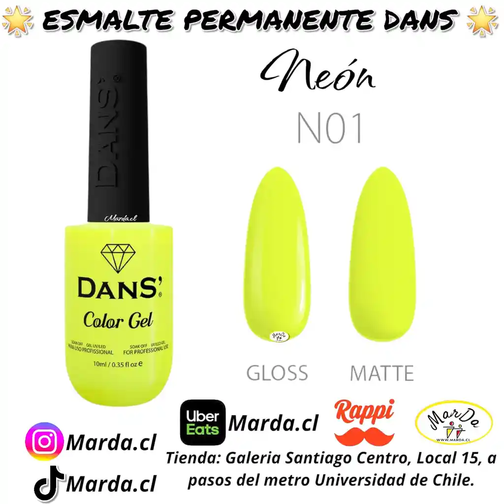 Es un tipo de manicure que se realiza con esmaltes permanentes Dans. Se fijan con lámparas UV/LED. También se puede realizar la pedicure con el mismo método y con unos resultados extraordinarios y gran durabilidad. COLOR N01 - NEON