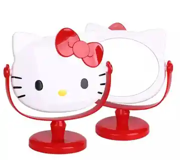 Espejo pedestal. Hermoso espejo del rostro de Hello Kitty con soporte. Su cara gira para que puedas dejarlo como adorno o utilizarlo como espejo. Medidas: 25 cm de alto x 4 cm de ancho x 18 cm de profundidad