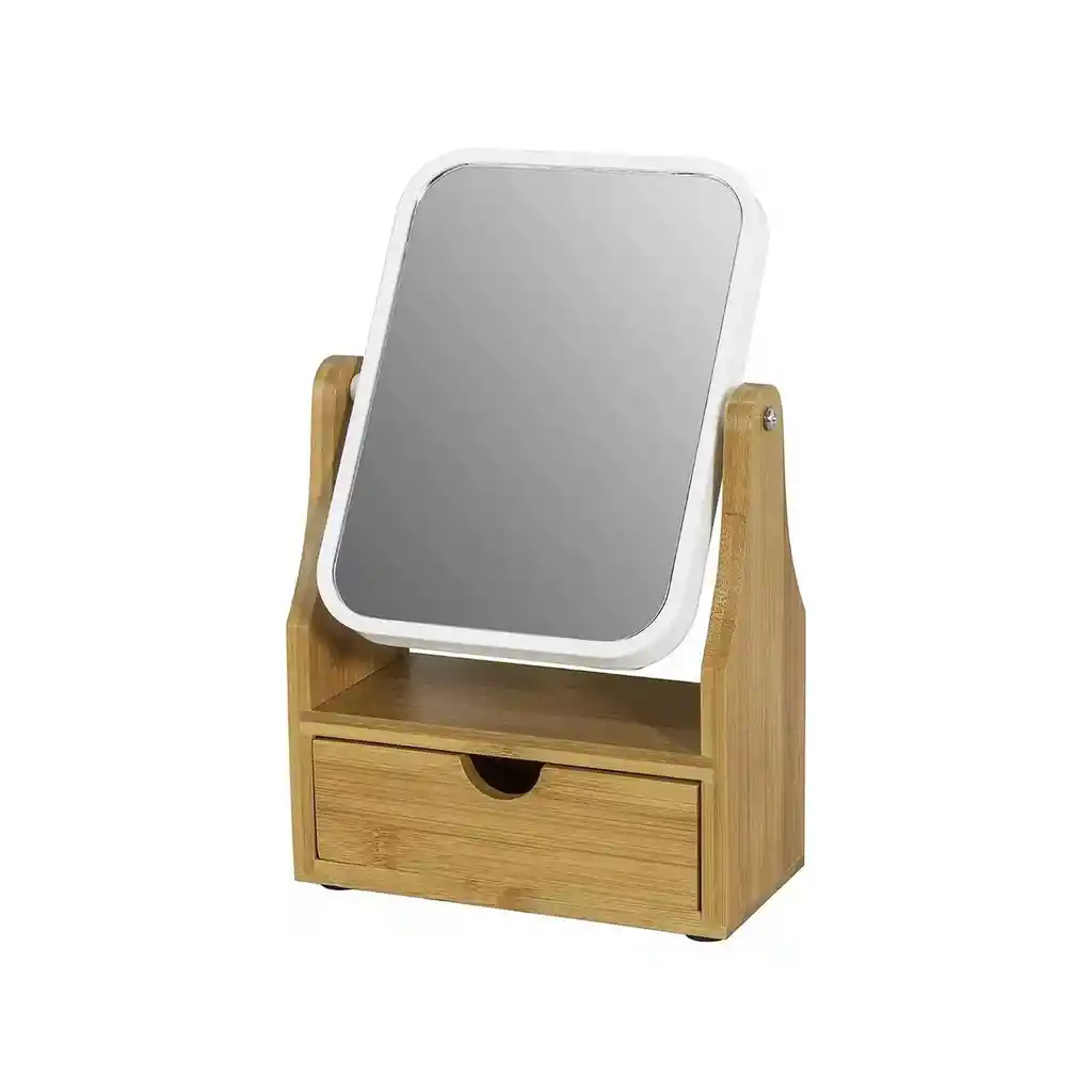 Espejo de Baño perfecto para el maquillaje, afeitado y limpieza facial, Perfecto como Regalo. Espejo de mesa, sería adecuado para cualquier familia, baño, hotel o lugares de lujo en todo el mundo. 360° de espejo giratorio, los ángulos ajustables del espejo le permiten colocarlo en el mejor puesto que le vaya. Hecho de Bambú y MDF.