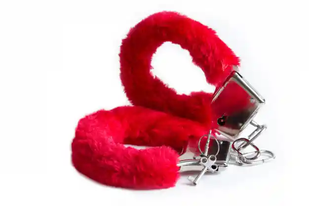 Esposas de metal con suave forro de peluche para no lastimar las muñecas. Color rojo. Características: Color: Rojo Materiales: Metal cubierto de peluche Peso: 85 grs. Observaciones: Incluye llaves de fantasía.