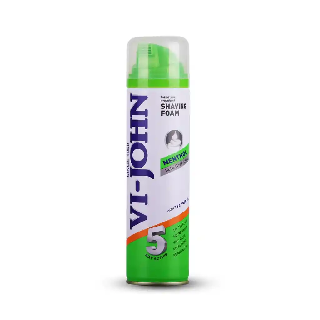 Espuma de Afeitar VI JOHN 5 en 1 con Mentol y Vitamina E Para Piel Sensible Su rica fórmula tipo mantequilla con efecto refrescante ayuda a calmar y suavizar el vello facial, facilitando una experiencia de afeitado suave. Olvídate de cortes, rasguños o enrojecimiento con esta excelente crema de afeitar, enriquecida con aceite de árbol de té y vitamina E. La vitamina E ayuda a mantener la hidratación de la piel, protege las células del daño y suaviza la piel, mientras que el aceite de árbol de té calma y reduce la irritación tras el afeitado. Su fragancia suave y fresca te mantendrá con una sensación de frescura durante todo el día.