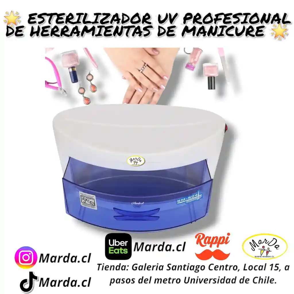 Esterilizador de Instrumentos de Manicure o pedicure Tiempo de esterilizacion entre 35 y 45 minuto Esteriliza por radiación Ultra Violeta (UV) Elimina el 99% de baterías o cualquier otro virus u hongos. El esterilizador UV proporciona la máxima higiene de instrumentos y herramientas de trabajo. Puede esterilizar cualquier tipo de material: metálico, plástico, cristal o papel. Válido para esterilizar alicates, limas, esponjas, peines, etc. Medidas aproximadas: 40 cms de ancho x 20 cms de ancho x 24 cms de profundidad. Para su uso debe introducir los objetos limpios y secos. Marca: genérica