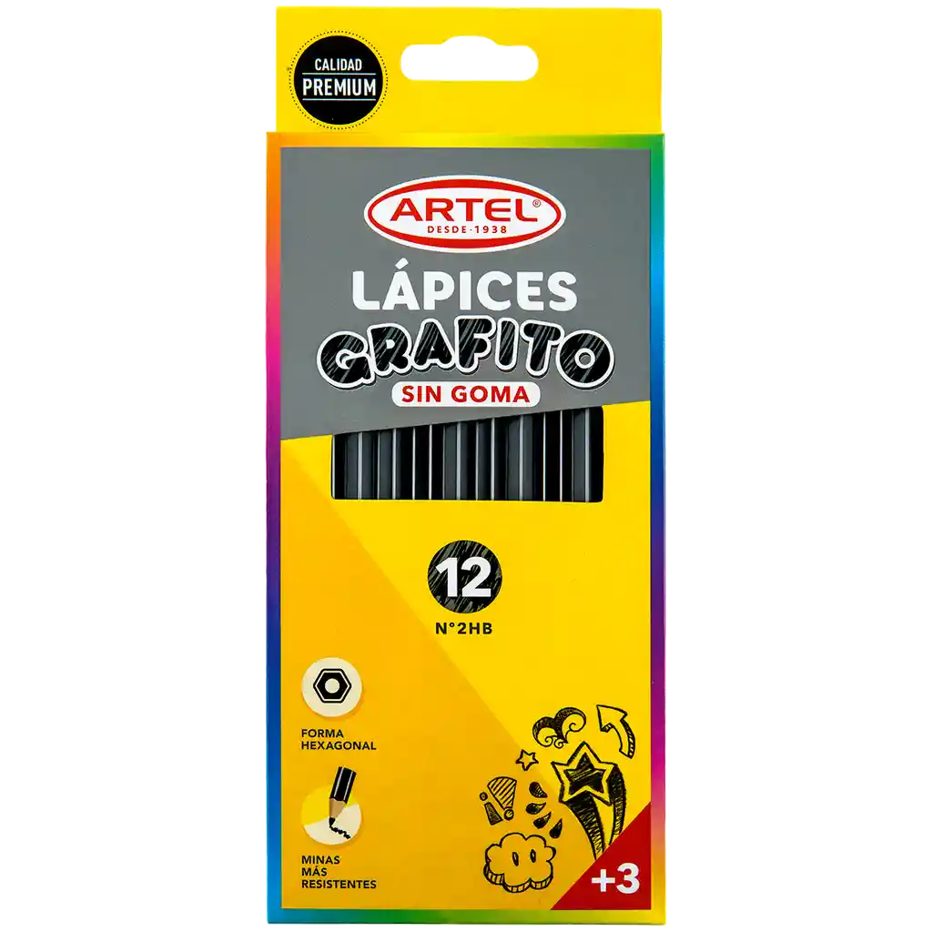 Estuche 12 Lápices Grafito Hb Sin Goma Artel
