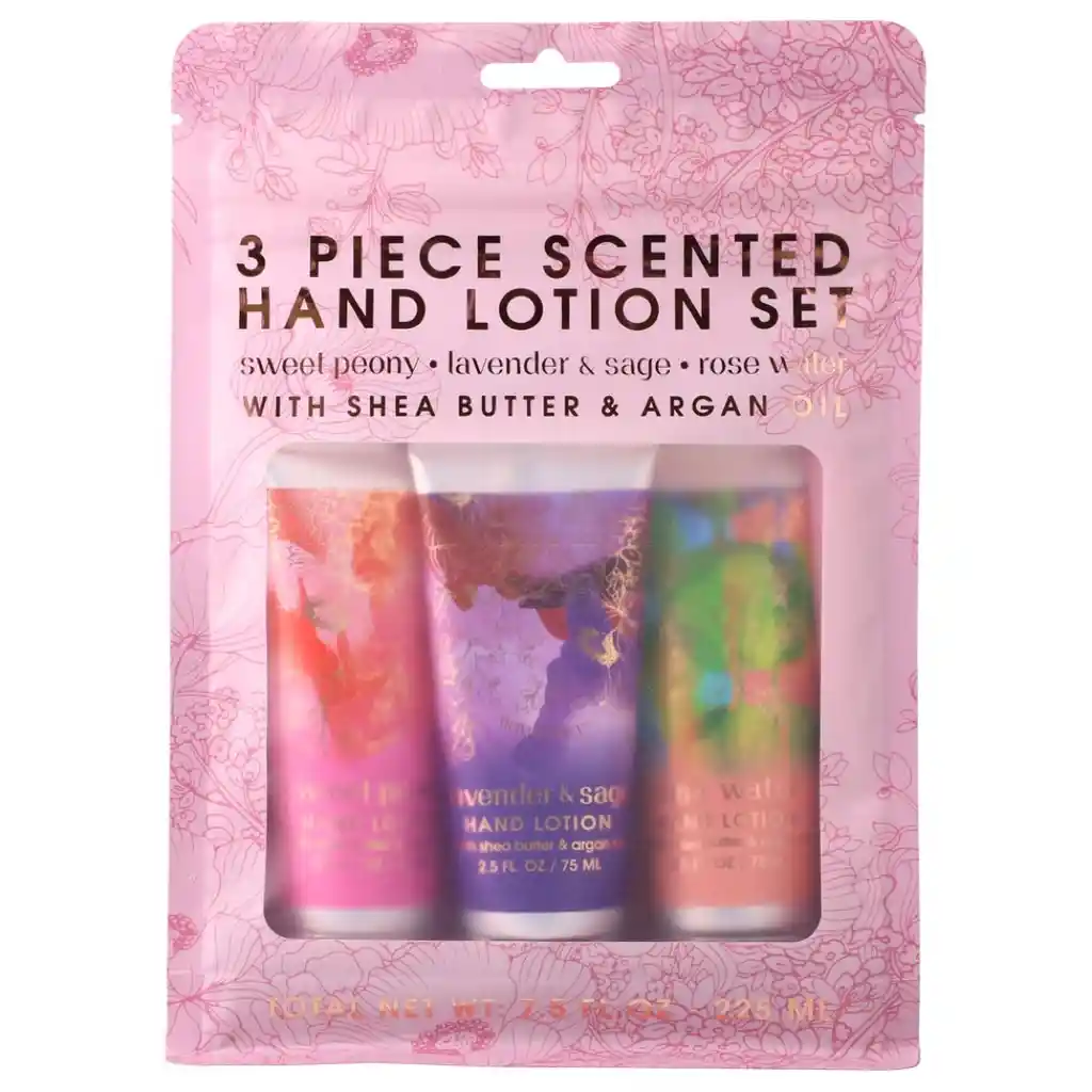 Set de crema de manos con aromas florales. Formuladas con manteca de karité y aceite de argán para hidratar intensamente.