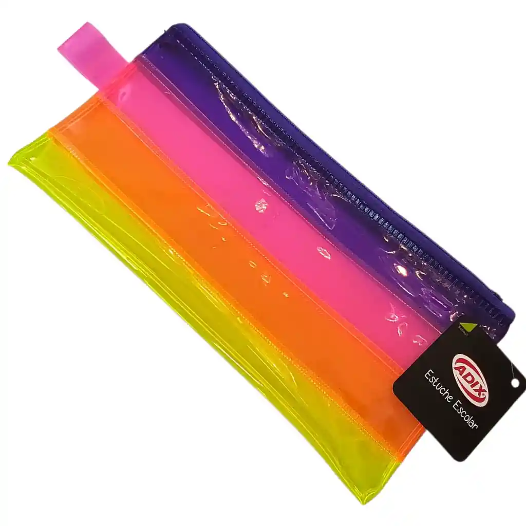 Estuche escolar multicolor. Un cierre. Múltiples usos. Medidas 11 x 22 cm. aprox. Material: PVC. Marca: ADIX