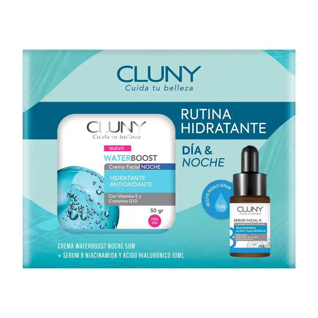 Estuche Rutina Hidratante Cluny Crema Waterboost Noche + Mini Serum B Niacinamida Y Acido Hialurónico B