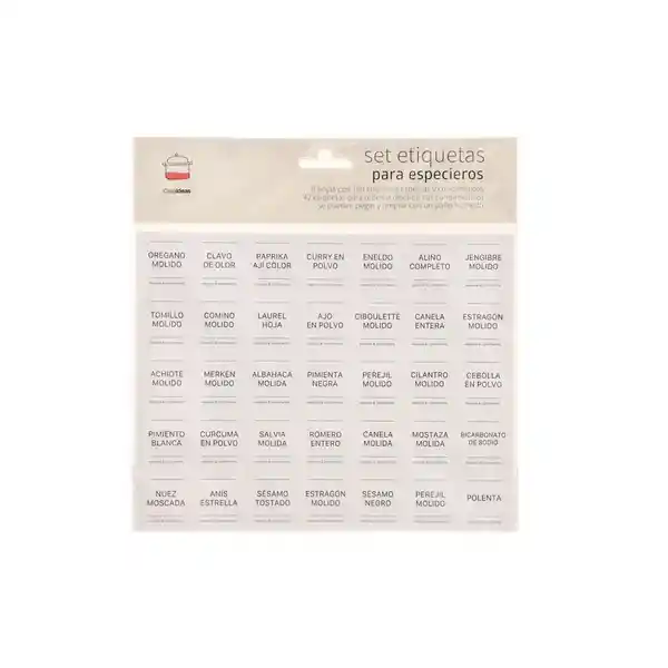 Para Marcar Tus Especieros. Incluye 6 Hojas Con 168 Etiquetas de Especias y Condimentos y 42 Etiquetas Para Rellenar.