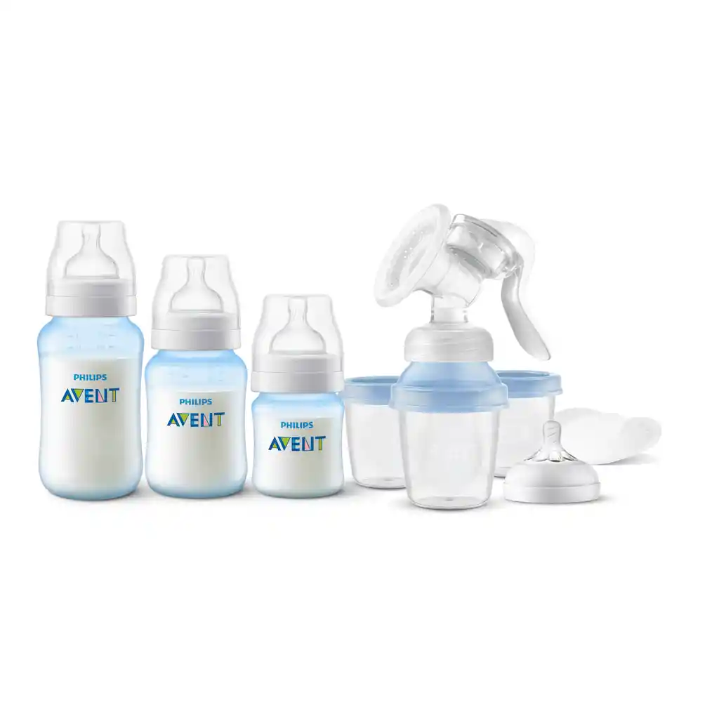 Contenido: • 1 Extractor de leche manual Philips Avent SCF430/13 • 1 Set de Biberones Anti-colic de 125ml, 260ml, 330ml Extractor de leche manual Philips Avent SCF430/13 Contenido • 1 Cabezal absorbente de leche manual • 1 Cabezal de mamadera natural con Tetina 0m+ Flujo lento • 2 Absorbentes mamarios desechables • 3 Vasos de almacenamiento de 180ml • 1 Cabezal adaptador La tecnología de movimiento natural permite un flujo de leche más rápido. • Extraiga, almacene y alimente fácilmente • Juego básico La innovadora brida de silicona, inspirada en la particular succión del bebé, estimula el pezón para ayudar a que la leche fluya con rapidez. Para una extracción cómoda y eficaz. Talla única. Ya que todas tenemos diferentes formas y tamaños, la almohadilla de silicona se flexiona suavemente y se adapta para ajustarse a su anatomía personal. Se adapta al 99,98 % de los tamaños de pezones* (hasta 30 mm). El extractor de leche es pequeño y ligero, lo que permite guardarlo y transportarlo fácilmente, lo que hace que la extracción en cualquier lugar sea simple y discreta. Un extractor de leche manual único y portátil, ideal para madres que necesitan liberar suavemente la leche mientras están lejos de casa o antes de amamantar. No dude en ajustar el ritmo de bombeo y la succión según sus necesidades, comodidad y flujo de leche. Relájese y siéntese cómodamente mientras ocurre la extracción, gracias a nuestro diseño que le permite sentarse erguida, en lugar de tener que inclinarse hacia delante. Debido a que tiene pocas piezas, nuestra nueva bomba es fácil de configurar y limpiar. Extraiga la leche directamente en el vaso de almacenamiento, lo que evita derrames o filtraciones. Cuando el bebé tenga hambre, simplemente coloque la tetina blanda en el vaso para alimentarlo. Guarde la leche en el refrigerador o el freezer y elija su solución de almacenamiento preferida: bolsas o vasos. Set de 3 Biberones de 125ml, 260ml, 330ml Contenido: 1 Mamadera de 125 ML 1 Mamadera de 260ML 1 Mamadera de 330 ML ¡Un completo set pensado especialmente para reducir los dolorosos cólicos de tu bebé al momento de alimentarse! El Set mamadera anti-colic de Avent se ha diseñado especialmente para evitar que el aire entre en la barriguita de tu bebé, ¡reduciendo la posibilidad de dolorosos cólicos! Cuando tu bebé se alimenta, la válvula integrada en la tetina se flexiona con el fin de que el aire entre en la mamadera, evitando la acumulación de vacío, y dirige el aire hacia la parte posterior, manteniéndolo en la mamadera, ¡pero lejos del estómago de tu pequeño! Además, la forma de la tetina permite un enganche seguro y su textura acanalada ayuda a evitar que la tetina se colapse, logrando que la alimentación de tu bebé sea mucho más cómoda e ininterrumpida. Su diseño antigoteo es ideal para evitar el goteo durante la alimentación, entregándole a tu bebé una experiencia realmente agradable. Fácil de agarrar, fácil de limpiar, y reduce en 60% los malestares nocturnos de los más pequeños. Con mamaderas de diferentes tamaños, ¡este set es perfecto para tu bebé según sus necesidades! • Menos cólicos: Nuestra válvula anticólico está diseñada para mantener el aire lejos de la barriguita de su bebé para reducir los cólicos y el malestar. Mientras el bebé se alimenta, la válvula integrada en la tetina se flexiona para permitir que ingrese el aire en el biberón y llevarlo a su parte posterior para evitar la formación de vacío. Además, mantiene el aire en el biberón y lejos de la barriguita del bebé para ayudar a reducir los cólicos y el malestar. • Alimentación ininterrumpida: La forma de la tetina permite una sujeción segura y la textura acanalada ayuda a prevenir la contracción de la tetina para entregar una alimentación cómoda e ininterrupciones. • Fácil de limpiar: Con su cuello ancho y menos piezas, nuestro biberón es más fácil de armar y limpiar de forma rápida y minuciosa • Diseño antigoteo: Diseñamos nuestro biberón anticólico para evitar las filtraciones durante la alimentación y así disfrutar de una experiencia realmente agradable. • Sin BPA: El biberón anticólicos Philips Avent está fabricado con materiales sin BPA (PP). • Fácil de manejar: La exclusiva forma del biberón permite que sea fácil de sujetar y sostener en cualquier dirección. • Fácil de armar: Nuestro biberón anticólico tiene pocas piezas para armarlo de forma rápida y sencilla • Menos irritabilidad: El biberón anticólicos Philips Avent reduce el malestar. Los bebés alimentados con biberones anticólicos Philips Avent experimentaron un 60% menos de malestar por la noche, en comparación con aquellos alimentados con un biberón anticólicos de la competencia*. Edad Recomendada: 0 Meses +