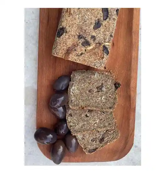 Bloque de harina de almendras, con aceituna y cebolla; ideal para aperitivos o comida. Su textura es densa y suave. Corte perfecto para hacer tostadas irresistibles. Conservación: refrigerado entre 5º-15º, congelado 6 meses.