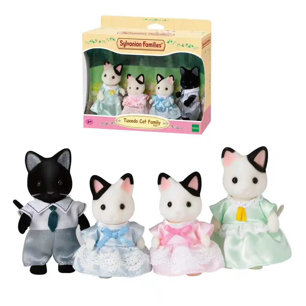 ¡Han llegado unos nuevos vecinos a la aldea Sylvanian! La familia Gato Tuxedo está compuesta por 2 adultos y 2 niños donde cada integrante de esta adorable familia tiene una cualidad única que todos los habitantes de esta calidad ciudad aman. Estos muñecos están diseñados con detalles auténticos, contando con un par de puntos de articulación ofreciendo una mayor posibilidad de poses y juego imaginativo. Este es un juguete que desarrolla las habilidades creativas y la destreza, fomentando a que creen un juego imaginativo promoviendo la historia de fantasía, el juego de rol y desarrollar nuevas habilidades y hobbies.