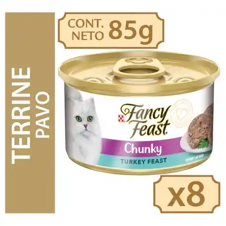 Fancy Feast Terrine Pavo – Chunky Turkey Feast – 85 g es un alimento húmedo para gatos adultos presentado en lata. Contiene un Mix de trozos de pavo delicadamente picados combinado con un delicioso paté que encantarán a tu gato. Por eso Fancy Feast, ofrece un menú completo y variado de deliciosos sabores y texturas para que tu gato tenga una experiencia gourmet todos los días.