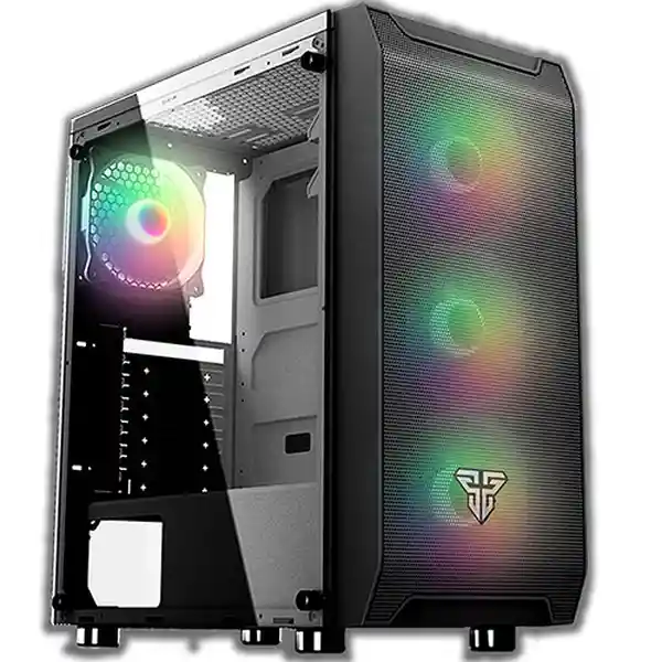 Tiene un tamaño máximo de placa madre ATX, Mini ATX y Micro ATX, posee el espacio perfecto para tu fuente de poder (fuente de poder no incluida en el chasis) incluyéndote el cableado, panel lateral con un vidrio templado y acabado mate negro en su placa metálica, contando con una Iluminación RGB (no controlable).