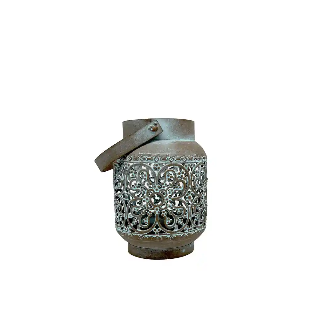 Farol de metal con cilindro de vidrio de 10,5 cm de diametro x 13 cm de altura