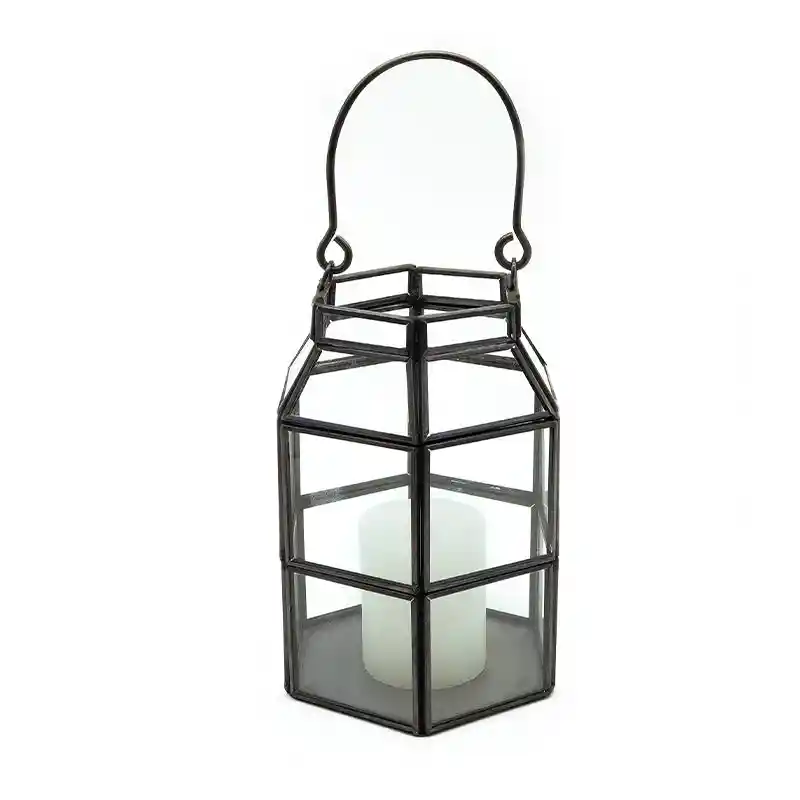 Farol de metal de 13 cm de diámetro y 24 cm de alto. Vela indicada para usar en su interior: Vela de hasta 5,5 cm de diámetro. Colocar sobre una superficie plana.