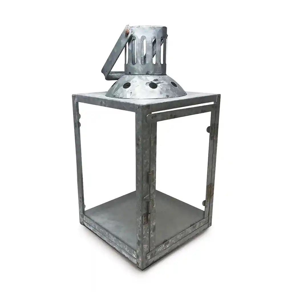 Farol estilo country de 15 de lado y 30 cm de alto. Acabado tipo zinc Vela indicada para usar en su interior: Vela de hasta 10 cm de diámetro.