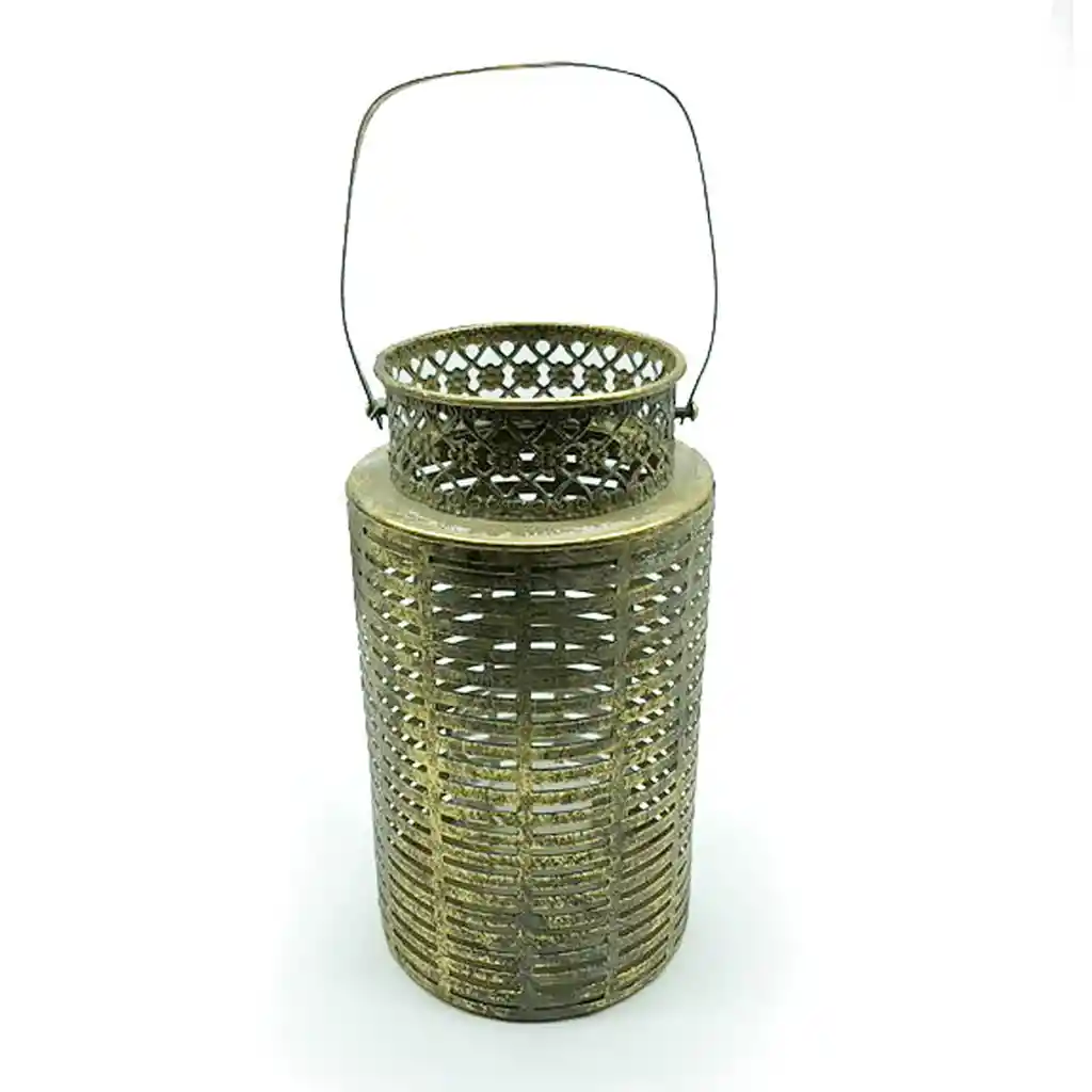 Farol de metal de 13 cm de diámetro y 24 cm de alto. Vela indicada para usar en su interior: Vela de hasta 5,5 cm de diámetro. Colocar sobre una superficie plana.