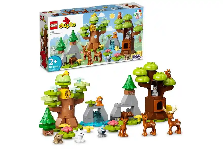 Alimenta la pasión de tu peque por los animales con el set LEGO® DUPLO® Fauna Salvaje de Europa (10979). Este versátil juguete invita a los niños de 2 años o más a divertirse jugando a su manera y les aporta ventajas para el desarrollo. Descubre la naturaleza con tu pequeño explorador Enséñale a tu amante de los animales favorito la fauna salvaje y los entornos de Europa. Este set de juego y aprendizaje incluye 11 animales en sus hábitats naturales: 2 ciervos adultos, un cervato, un oso, unzorro, un jabalí, un pájaro, un conejo, un pato y 2 ardillas. Contiene también una cueva y árboles, así como un tapete de juego tridimensional decorado con motivos forestales. Estos estímulos favorecen la autoexpresión y el desarrollo de habilidades mientras los niños disfrutan interpretando historias. Aprendizaje lúdico para bebés Los sets LEGO DUPLO, diseñados por expertos, cuentan con colores brillantes, personajes diversos y montones de detalles para dar a tu peque un GRAN comienzo en la vida. • Explora la naturaleza: El set LEGO® DUPLO® Fauna Salvaje de Europa (10979) proporciona a los preescolares un sinfín de oportunidades prácticas de juego y aprendizaje rodeados de la vida silvestre de Europa. • 11 animales de juguete para bebés: 2 ciervos adultos, un cervato, un oso, un zorro, un jabalí, un pájaro, un conejo, un pato y 2 ardillas en sus hábitats naturales Para aprender jugando: Este versátil juguete con animales salvajes propone a los niños una manera divertida de expresarsey desarrollar sus habilidades motrices finas mientras disfrutan interpretando infinitas aventuras en los bosques de Europa. • Regalo para preescolares: Regala a tu peque de 2 años o más este set práctico con animales por su cumpleaños, en fiestas señaladas o cualquier día inesperado. • Un montón de espacio para jugar: El tapete de juego mide aproximadamente 25 cm de altura, 46 cm de anchura y 23 cm de profundidad. El árbol en flor tiene una altura aproximada de 21 cm. • Aprendizaje lúdico: Todos los sets LEGO® DUPLO®, diseñados por expertos, plantean atractivas historias y cuentan con motones de colores, personajes diversos y numerosos detalles para dar a tu peque de mente curiosa un GRAN comienzo en la vida. • Calidad sistemática: Los componentes LEGO® DUPLO® cumplen estrictas normas del sector para garantizar que los deditos puedan cogerlos, colocarlos y separarlos fácilmente; así ha sido desde 1969. • Seguridad acreditada: Los elementos y ladrillos LEGO® DUPLO® se dejan caer, se calientan, se aplastan, se retuercen y se analizan para verificar que satisfacen rigurosos estándares mundiales de seguridad.