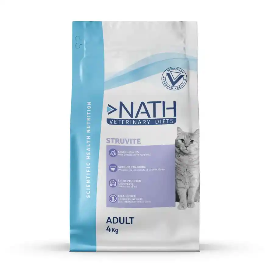 Si tu gato sufre de cálculos de estruvita o infecciones urinarias, es esencial brindarle un alimento que lo ayude a disolver los cristales, aliviar el dolor y prevenir nuevas formaciones. El alimento renal sin cereales de Nath ha sido especialmente formulado para proteger la salud urinaria de los gatos adultos, ayudando a prevenir y tratar enfermedades del tracto urinario. Su receta sin cereales mejora la digestión y favorece una nutrición equilibrada. Especial para Gatos con Problemas Urinarios Los cálculos de estruvita son cristales que se forman en el sistema urinario, causando dolor intenso, malestar e incluso sangrado. Para combatir este problema, Nath ha desarrollado una fórmula con ingredientes de alta calidad como pollo deshidratado, guisantes y pulpa de manzana, los cuales ayudan a regular el pH urinario y reducir la formación de cristales. Este alimento también posee propiedades acidificantes y subsaturantes de la orina, lo que contribuye a disolver los cálculos y evitar su reaparición. Además, su formulación favorece un sistema digestivo y renal saludable, proporcionando alivio y bienestar a tu felino. Importante: Consulta con tu veterinario antes de su uso, especialmente si tu gato ya ha sido diagnosticado con problemas urinarios. Beneficios del Alimento Renal Nath: Ayuda a disolver los cálculos de estruvita Previene infecciones urinarias y enfermedades renales Disminuye el riesgo de que los cálculos vuelvan a aparecer Ingredientes de alta calidad para una dieta saludable y equilibrada Libre de cereales, ideal para una mejor digestión Uso y Especificaciones: Indicado para gatos adultos de todas las razas con problemas urinarios Consultar al veterinario antes de su uso o prolongación Protege la salud urinaria de tu gato con una alimentación diseñada para su bienestar. ¡Porque su comodidad y felicidad son lo más importante!