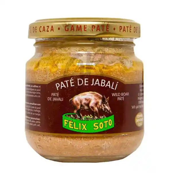 arne de jabalí a la cazadora (21%), (carne de jabalí 18%, cebolla, vino blanco, aceite de oliva virgen extra, coñac, sal y especias) bacón, hígado de pollo, aceite de oliva virgen extra, mantequilla, cebolla, oporto, sal, azúcar y especias. packing: Frasco