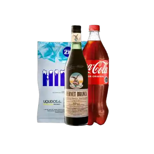 Contiene 3 Unidades. Fernet Espumante 750 mL + Coca-Cola Gaseosa Normal 1.5 L + Hielo.