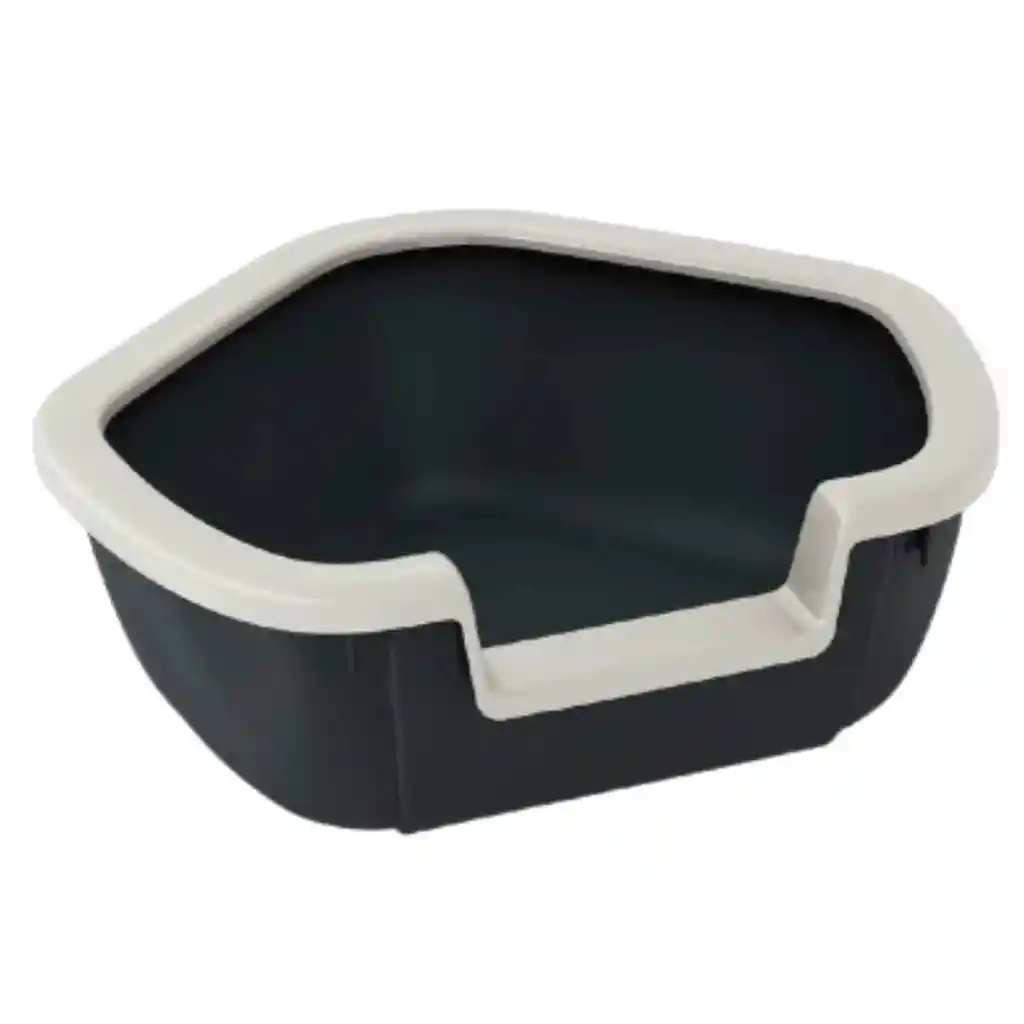 DESCRIPCIÓN • Muy higiénica, con un marco de plástico para sujetar la bolsa • Se puede poner en las esquinas de las habitaciones • Base ancha, que evita que salga suciedad • Parte delantera más baja para que tu mascota pueda entrar • ECO-SOSTENIBLE: fabricada de plástico reciclado DIMENSIONES 51 × 57 × 22 cm COLOR Negro/Blanco