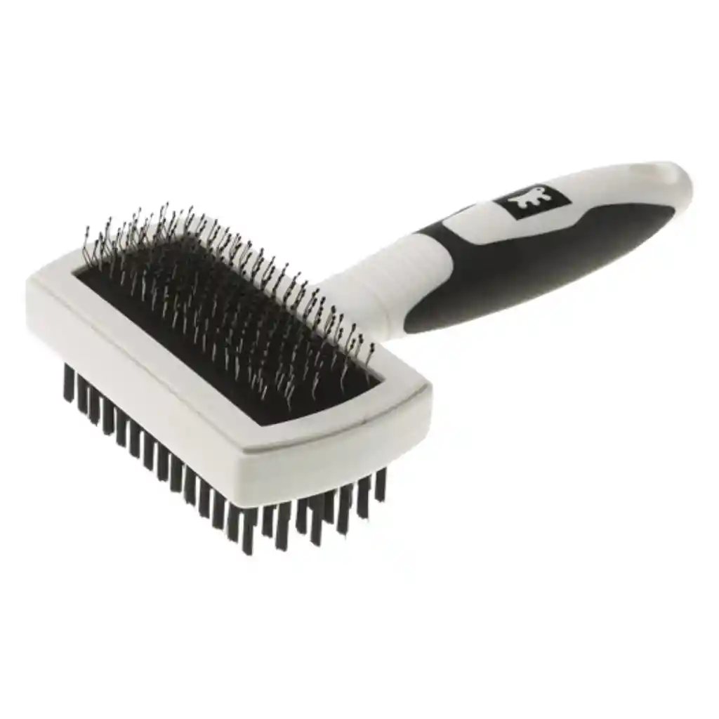 Descripción ¿Buscas un producto para el manto de la mascota? Ferplast propone GRO 5765, un cepillo combinado dedicado a perros y gatos de pelo intermedio y largo. Muy eficaz en la eliminación del pelo muerto, es equipado con púas de acero inoxidable con puntas recubiertas con resina que quitan el pelo muerto sin dañar la piel, mientras que las cerdas de póliamida tienen la propiedad reestructuradora, dando brillo al manto. Práctico de utilizar, este cepillo tiene el innovador mango ergonómico con goma suave que garantiza una mayor comodidad. GRO 5765 se caracteriza además por materiales resistentes y de alta calidad para asegurar una mayor robustez. Accesorio perfecto para el diario aseo de la mascota, este cepillo pertenece a la gama Grooming Premium, una línea completa de accesorios dedicados al aseo de los amigos peludos. Para encontrar las necesidades de todos, la gama Premium diversifica sus productos según el tipo de animal, el tipo de pelaje y la función necesaria, como el lavado, el cuidado del manto o del manto inferior, la esquila, la cura de patas y uñas o la función plaguicidas. ¡Cada necesidad será satisfecha con Ferplast! característica Cepillo combinado para perros y gatos Dona un masaje al manto y lo hace brillante Púas de acero inoxidable para quitar el pelo muerto del manto inferior Cerdas de póliamida para reestructurar el manto Mango ergonómico con goma suave para el máximo confort Materiales resistentes para una mayor robustez Adecuado para animales de pelo intermedio y largo Dimensiones: 18,5 x 11 x h 5,2 cm