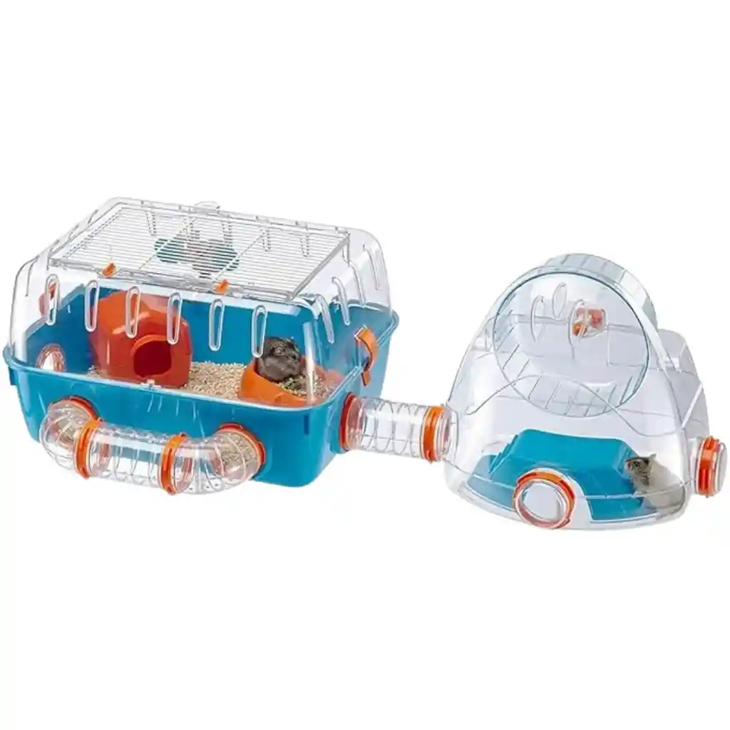 Ideal para hámsters, Combi 2 se compone de una casa principal y un divertido gimnasio anexo con una rueda y escalera para la actividad física de su animal. Las dos unidades están conectadas entre ellas con un tubo transparente. La jaula, hecha de plástico resistente, está equipada con un techo transparente con una parrilla metálica y huecos especiales para garantizar la ventilación interna. En el interior hay todo lo que su roedor necesita para estar cómodo: tazón, botella para beber, nido de casa y tubos de plástico. Diseñado para un fácil mantenimiento, el hábitat se puede limpiar y ordenar fácilmente. Elija el modelo que se adapte al tamaño de sus mascotas. Características: INNOVADOR Y VIVO: Espacioso hábitat diseñado para el hámster enérgico, con un techo único con clips laterales y rejilla superior para mejorar la ventilación y el juego. ACTIVIDAD FÍSICA MEJORADA: Incluye un gimnasio al aire libre para mantener a su mascota activa y saludable, directamente accesible desde el hábitat principal. DISEÑO Y PATRIMONIO ITALIANO: Diseñado por Ferplast en Italia, pionero en innovación en el cuidado de mascotas desde 1966, conocido por hábitats que combinan funcionalidad con atractivo estético, mejorando la calidad de vida de las mascotas en todo el mundo. Accesorios incluidos: nido, botella para beber, cuenco, rueda de ejercicio, tubos para jugar y gimnasio conectado. Preparado para la conexión a través de tuberías con otras jaulas o hábitats para hámsters. Dimensiones:79.5×29.5×26.3 cm Largo: 79,5 cm Ancho: 29.5 cm Alto: 26,3 cm