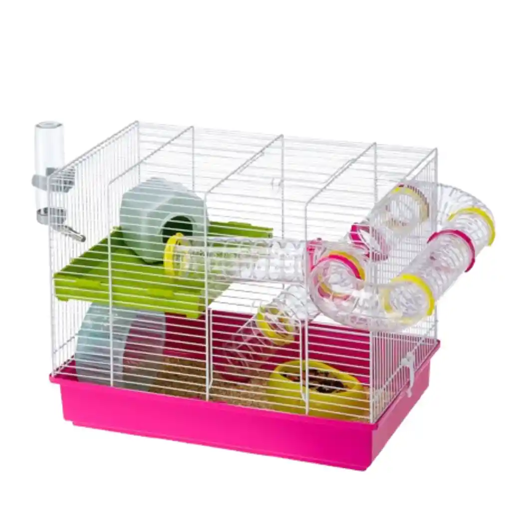 La Jaula para hamster – Laura con una base de plástico y una estructura de malla de alambre pintado. Está equipada con accesorios para roedores, incluyendo un nido, un alimentador, una botella de bebida y una rueda de plástico, así como tubos transparentes dentro de los cuales su pequeño roedor puede correr y divertirse. Hay un estante plástico útil conectado a la malla, que crea una zona pequeña relajación para su amiguito. El hábitat puede limpiarse en un flash, gracias a la posibilidad de separar la base. Si Laura es la jaula correcta para su hámster, pero prefiere una versión más colorida, sugerimos que eche un vistazo a nuestra jaula Laura Decor. Características de la Jaula para hamster – Laura El hábitat ideal para animadas pequeñas mascotas Incluye tubos agradables para el ejercicio de la mascota Listo para ser conectado a tubos adicionales u otros hábitats modulares Base de plástico y estructura superior de malla de alambre Base desmontable para una limpieza fácil Accesorios incluidos Medidas de la Jaula para hamster – Laura largo 46 x ancho 29,5 x alto 37,5 cm