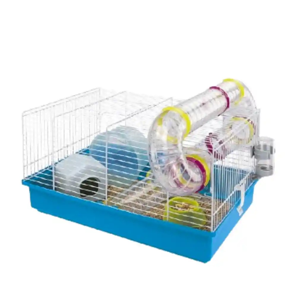 • Jaula modular de un nivel para hámsters • Base de plástico y malla metálica pintada • Malla y fondo desmontables para facilitar la limpieza. • Puertas de acceso a la jaula equipadas con un pestillo de seguridad. • Accesorios incluidos: un alimentador, un bebedero, una caja nido, una rueda y un juego de tubos • Diseñado para ser conectado a tubos adicionales u otros hábitats modulares Dimensiones: Largo 46 × Ancho 29.5 x Alto 24.5 cm