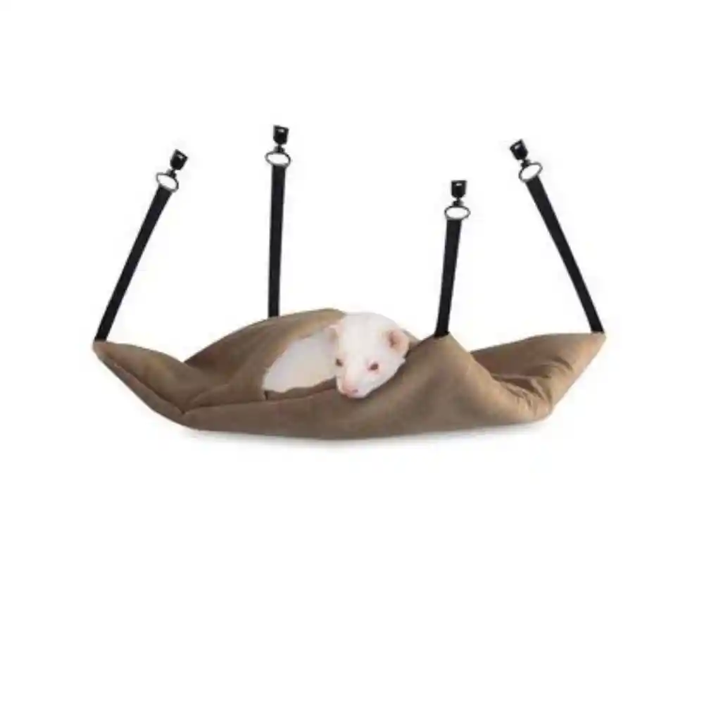 A los hurones les encanta dormir y acurrucarse. La súper acogedora hamaca para dormir Lazy Ferret seguramente los mantendrá calientes y los hará sentir seguros. El interior está forrado con forro polar para una comodidad súper suave, y una tela de nylon suave cubre el exterior. características: Clip de ajuste fácil en cada esquina Cálido y acogedor Forro polar Muy cómoda Especificaciones del artículo: Talla: 13 “x 10.5”