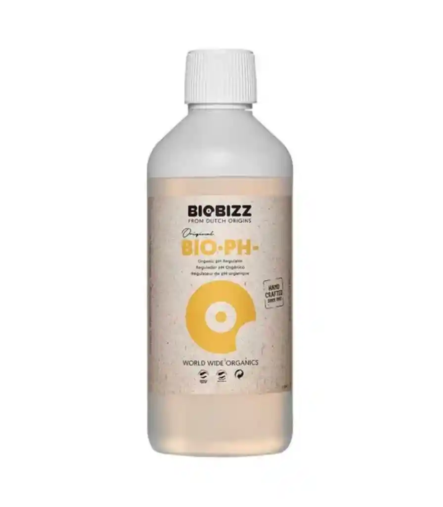 Bio·pH- es una solución acuosa hecha a base de ácido cítrico que se encuentra naturalmente en frutas cítricas como los limones. Corregir el pH de manera natural es esencial para que las plantas absorban la mayor cantidad de nutrientes. La formulación natural de Bio·pH- permite ajustar el pH de manera rápida en cualquier tipo de sustrato y cultivo, sin dañar los microorganismos del sustrato. Ha sido diseñado para funcionar perfectamente con los nutrientes Biobizz puede usarse en cada riego. Es posible usarlo tanto durante el periodo vegetativo como el periodo de floración.