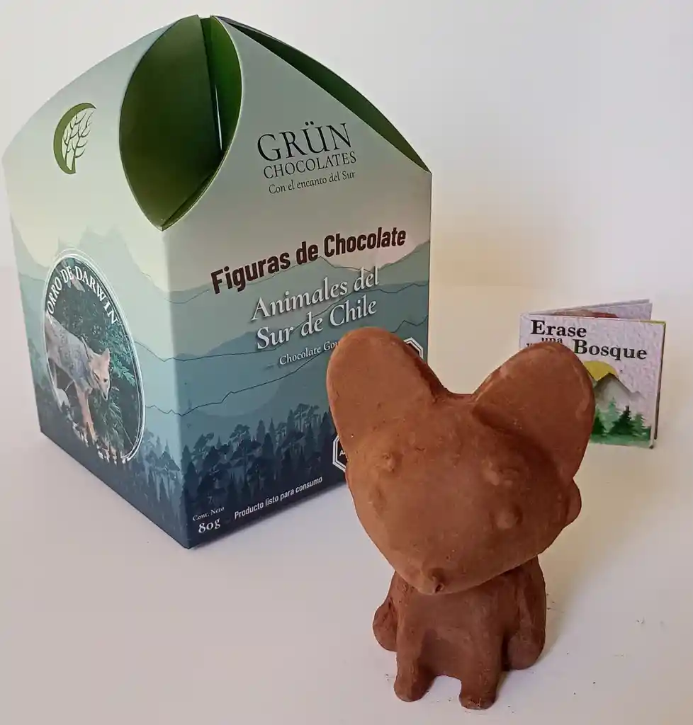 Figuras de chocolate de Leche con baño de cacao en polvo 80 gr, caja coleccionable con ficha de animalito, incluye mini cuento .