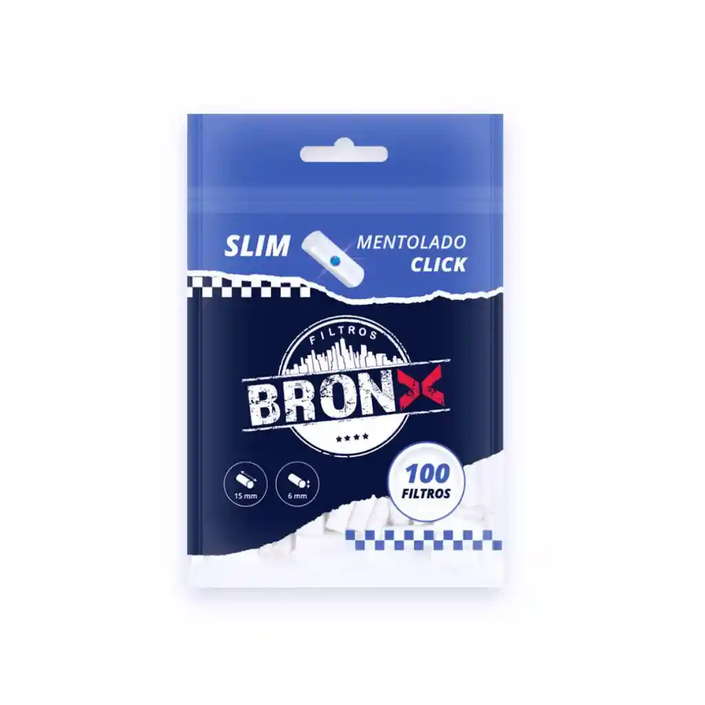FILTRO BRONX MENTA CLICK 100 UNIDADES 15 MM X 6 MM