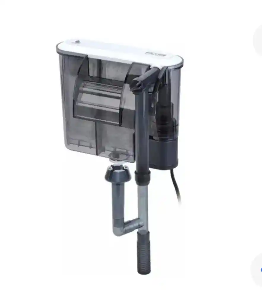 Filtro colgante externo para pecera HJ-068. Características principales: Filtración eficiente, diseño ultra-delgado para montaje en pared, circulación en cascada para oxigenación, y funcionamiento silencioso. Función: Mantener la calidad del agua en el acuario, eliminando residuos e impurezas, y proporcionando oxigenación al agua. Beneficios: Mayor capacidad de filtración en comparación con los filtros internos, ahorro de espacio dentro del acuario, y facilidad de limpieza al estar ubicado externamente. Uso: Ideal para acuarios pequeños y medianos, así como para aquellos que requieren una filtración constante y un buen nivel de oxigenación.