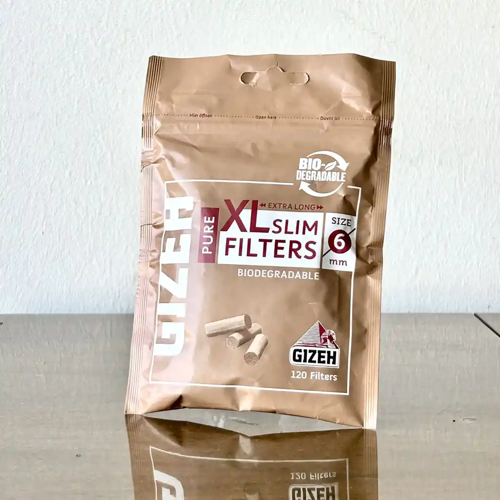 Disfruta de una experiencia natural y suave con los Filtros Gizeh Slim Orgánico XL. Este pack incluye 120 filtros biodegradables diseñados especialmente para quienes valoran una fumada limpia, pura y amigable con el medio ambiente. Fabricados en algodón orgánico, estos filtros slim ofrecen una textura agradable y una filtración eficiente, asegurando un sabor auténtico en cada uso. Con unas dimensiones ideales de 19 mm de largo y 6 mm de diámetro, estos filtros son perfectos para enrolar con comodidad y precisión, mejorando la calidad y la consistencia de cada cigarro. Presentados en una práctica bolsa, estos filtros marrón claro reflejan su carácter natural y ecológico, proporcionando una opción sustentable y responsable para el fumador moderno. Características destacadas: Pack con 120 filtros Slim Orgánico XL. Fabricados en algodón orgánico 100% biodegradable. Tamaño ideal: 6 mm de diámetro x 19 mm de largo. Ofrecen una fumada limpia y con sabor auténtico. Diseño ecológico en color marrón claro. Bolsa práctica para fácil almacenamiento y transporte. Modo de uso: Coloca el filtro en tu papel favorito. Añade tu mezcla preferida y enrola cómodamente. Disfruta de una fumada suave y natural. Acerca de nuestra tienda: Somos una PYME familiar dedicada a ofrecer productos de calidad para tabaquería y accesorios. Nos preocupamos por entregar una excelente experiencia de compra, asegurando que recibas tu pedido de forma rápida y confiable. Elige los Filtros Gizeh Slim Orgánico XL y disfruta cada sesión con un toque ecológico y de calidad superior.