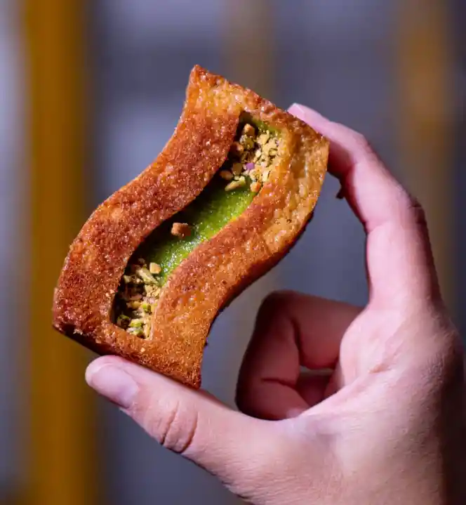El Financier está a base de harina de almendras. La forma se parece a un lingote, y está decorado con un mazapán u otro tipo de relleno para aún más gulosidad. 50g