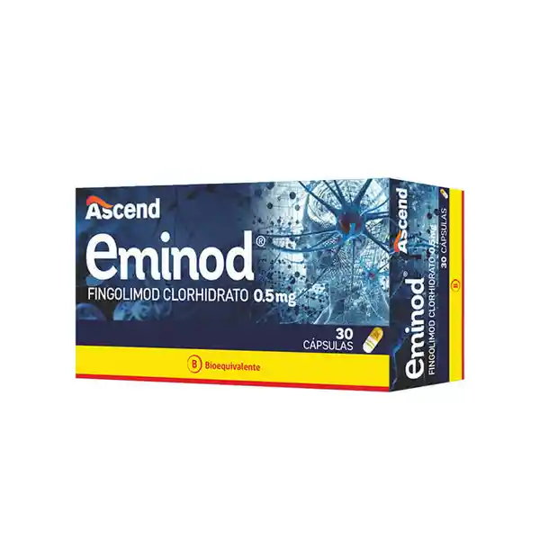 Principio Activo:Fingolimod Clorhidrato. Concentración: (0.5 mg). Forma Farmacéutica: Cápsulas. Equivalencia Terapéutico. Con 30 Cápsulas.