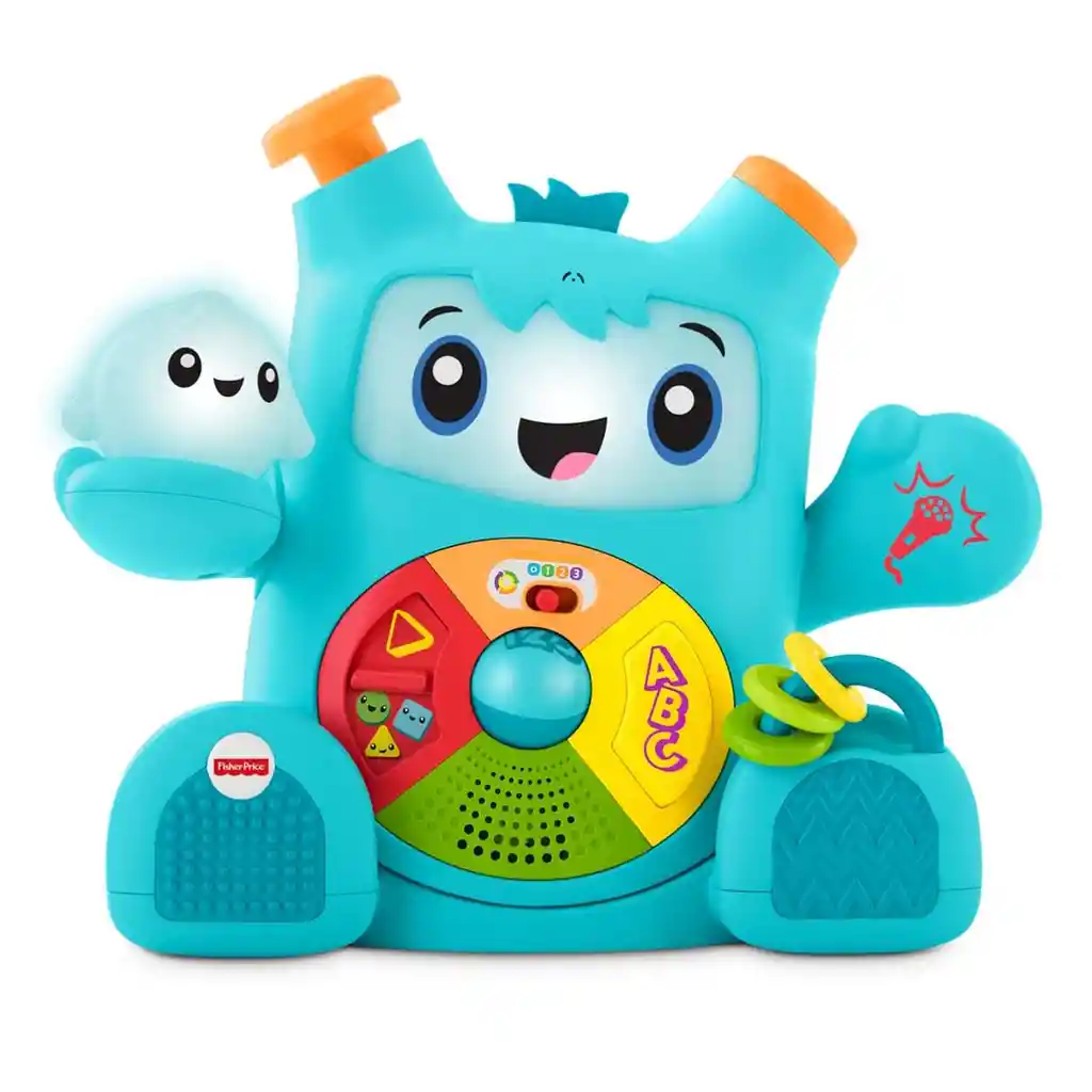 Juguete Interactivo Rocky Fisher Price ¡Un Movimiento de Balanceo Divertido Alienta al Bebé a Moverse y Moverse a lo Largo de la Música Una Diversión Llena de Vida: 1-2-3 Bate-En el Rodillo, Deslice la Puerta de Formas, o Mueva el Interruptor de Palanca Abc Rocki Tiene Una Cara Luminosa y Cabello y Pies Texturizados Para Que el Bebé Explore