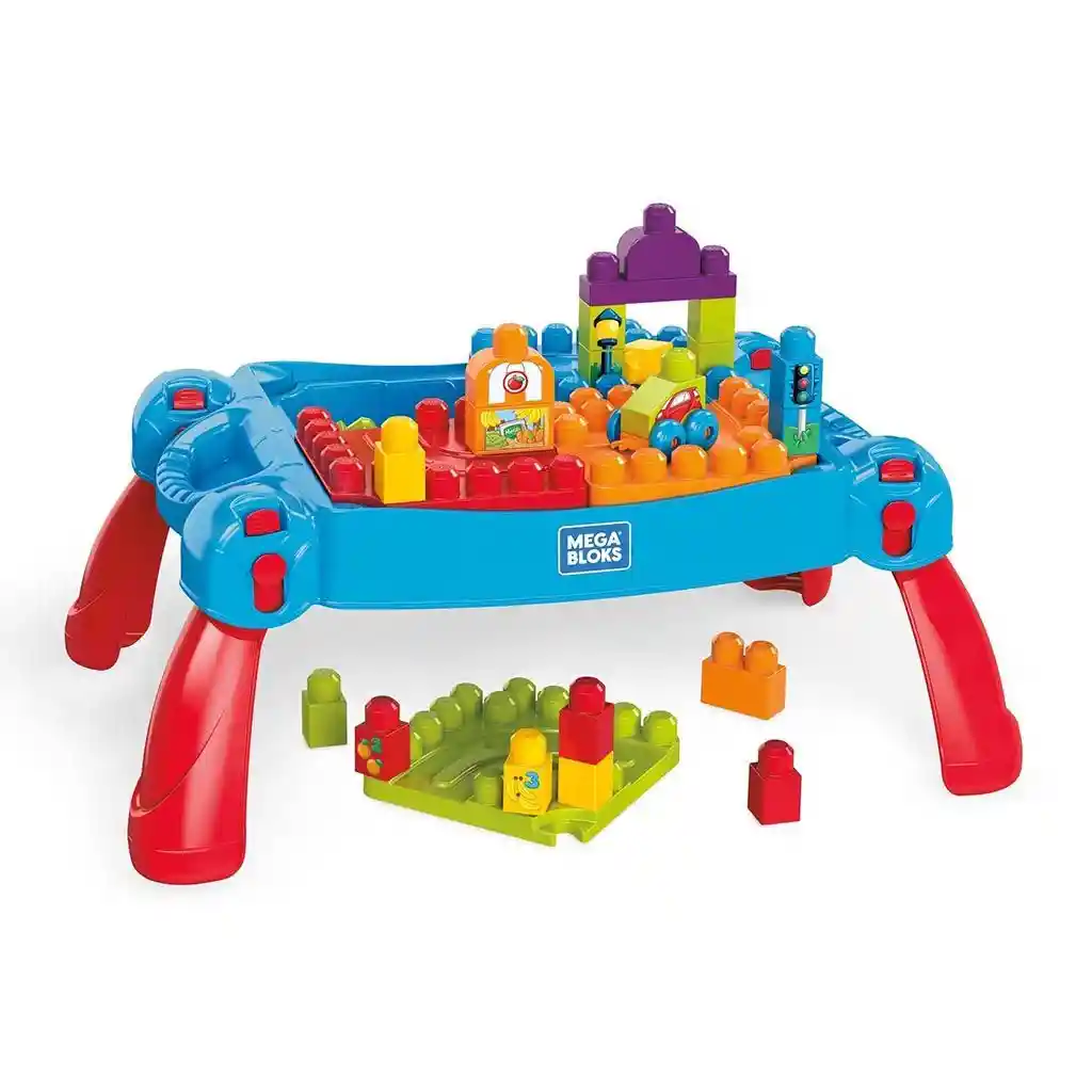Aprende los colores y los números cuando construyes mientras estás de paseo. Crea aventuras en todas partes usando esta mesa portátil para ensamblar un bullicioso centro de ciudad. Apila los bloques directamente sobre la mesa para construir una estación de gasolina, mercado y semáforo. Después coloca tus autos en las vías para dar un paseo. Aprende los colores y los números igualando bloques con decoración detallada, o contando frutas y verduras en el mercado. Perfecta para las familias ocupadas, la mesa tiene patas plegadizas, compartimiento para bloques y asa fácil de sostener. Ideal para edades de 1 a 5 años Set de construcción portátil con mesa plegable. Las 30 piezas incluyen bloques de construcción y partes especiales Construye un vecindario con mercado, estación de gasolina, semáforo y más.