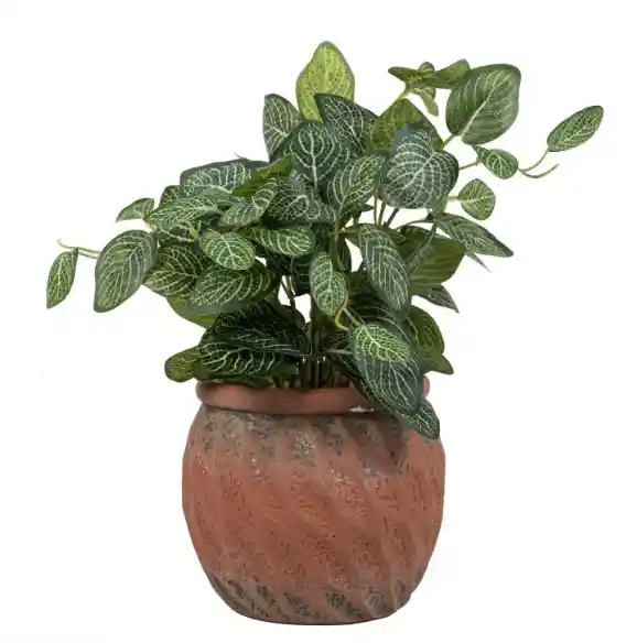 Fitonia artificial en macetero de cemento.