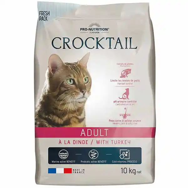 Flatazortrade Crocktail Kitten es un Alimento Completo Para Gatos Adultos Con un Delicioso Sabor a Pavo. Sin Soya Sin Transgénicos Sin Colorantes Solo Alimento de Calidad Para tu Peludito (O no Tan Peludito!). La Línea Crocktail Cuenta Con Alimentos Que Brindan Bienestar Idealmente Equilibrados Que Responden Perfectamente a Las Necesidades Nutricionales Especificas de Los Gatos Durante Toda su Vida. Flatazortrade Cuenta Con un Recorrido de 50 Años de Experiencia y Una Política de Apertura a la Innovación en Años Recientes Con Los Que Puede Ofrecer a Perros y Gatos Alimentos Completos Hechos en Francia de Gran Calidad Con Ingredientes Variados y Rigurosamente Seleccionados Con Materias Primas Vegetales no Transgénicas Sin Colorantes y al Menos 4 Carnes de Alta Digestibilidad Para Satisfacer Todas Las Necesidades Nutricionales de tu Mascota. Las Ventajas de Este Producto Son: Limita la Formación de Bolas (Extractos de Plantas) la Combinación de Trigo Malteado y Extractos de Plantas Así Como un Índice de Celulosa Adaptado Limita la Formación de Bolas de Pelo. Ph Urinario Controlado el Equilibrio de Minerales en Cantidad Moderada Permite Evitar la Sobrecarga Renal y Aporta un Ph Urinario Optimo Para Limitar el Riesgo de Formación de Cálculos Urinarios. Piel Sana y Pelaje Sedoso la Incorporación de Biotina y Quelato de Zinc Así Como el Equilibrio Optimo en Ácidos Grasos Esenciales (Omega 6 y 3) Ayudan a Conservar Una Piel Sana y un Pelaje Sedoso.