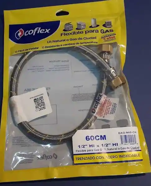 Conexión Flexible de Gas Para Cocina de 60 cm Fabricada en Material Resistente de Alta Calidad. Asegura Una Instalación Segura y Confiable Cumpliendo Con Los Estándares de Seguridad Para Proyectos de Construcción y Reformas. Garantía de Durabilidad y Funcionamiento Óptimo!.