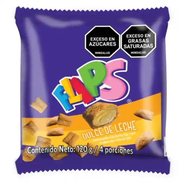 FLIPS Dulce de Leche 120gr - Deliciosas almohadas de cereal a base de arroz, trigo y avena con relleno sabor a Dulce de leche.