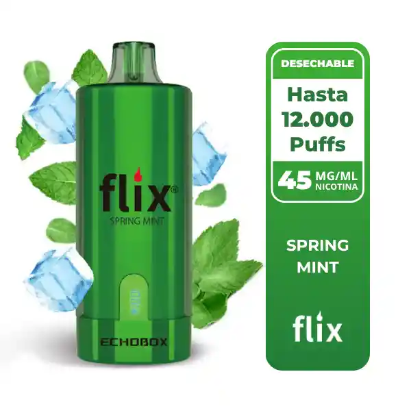El Flix Echobox Spring Mint 12 000 Puffs combina menta fresca con un toque floral suave, evocando la frescura de la primavera. Con 4,5 % de sales de nicotina, batería USB-C recargable y pantalla LED, ofrece hasta 12 000 caladas elegantes, limpias y refrescantes.