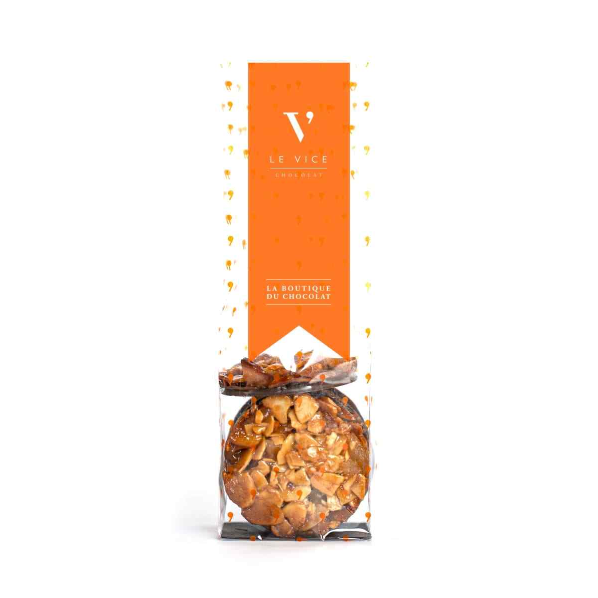 Con sus origenes en Florencia, Italia, esta espectacular galleta que hoy es conocida como parte de la cocina francesa es un placer imperdible. Semicubierta en chocolate, nuestra única mezcla de almendras caramelizadas con notas de miel, naranja y jengibre hacen de esta galleta un producto sin precedentes.