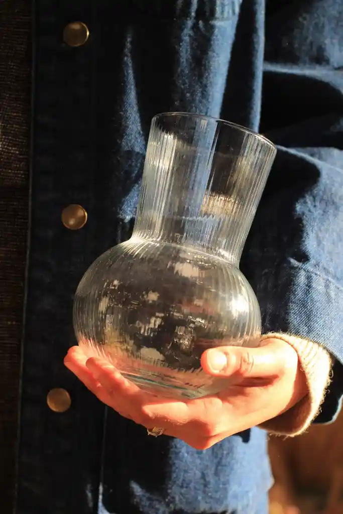 Florero de vidrio con preciosas detalles. *No incluye flores. Medidas: Altura aproximada 22 cms | Ancho 12 cms