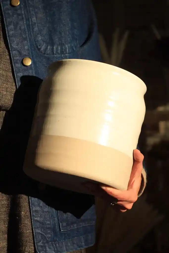 Florero de ceramica bicolor beige *No incluye flores. Medidas: Altura aproximada 20 cms | Ancho 19 cms