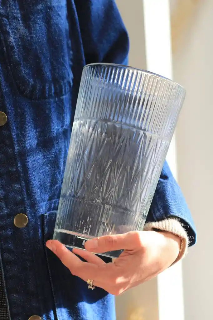 Florero de vidrio con preciosas detalles. *No incluye flores. Medidas: Altura aproximada 22 cms | Ancho 12 cms