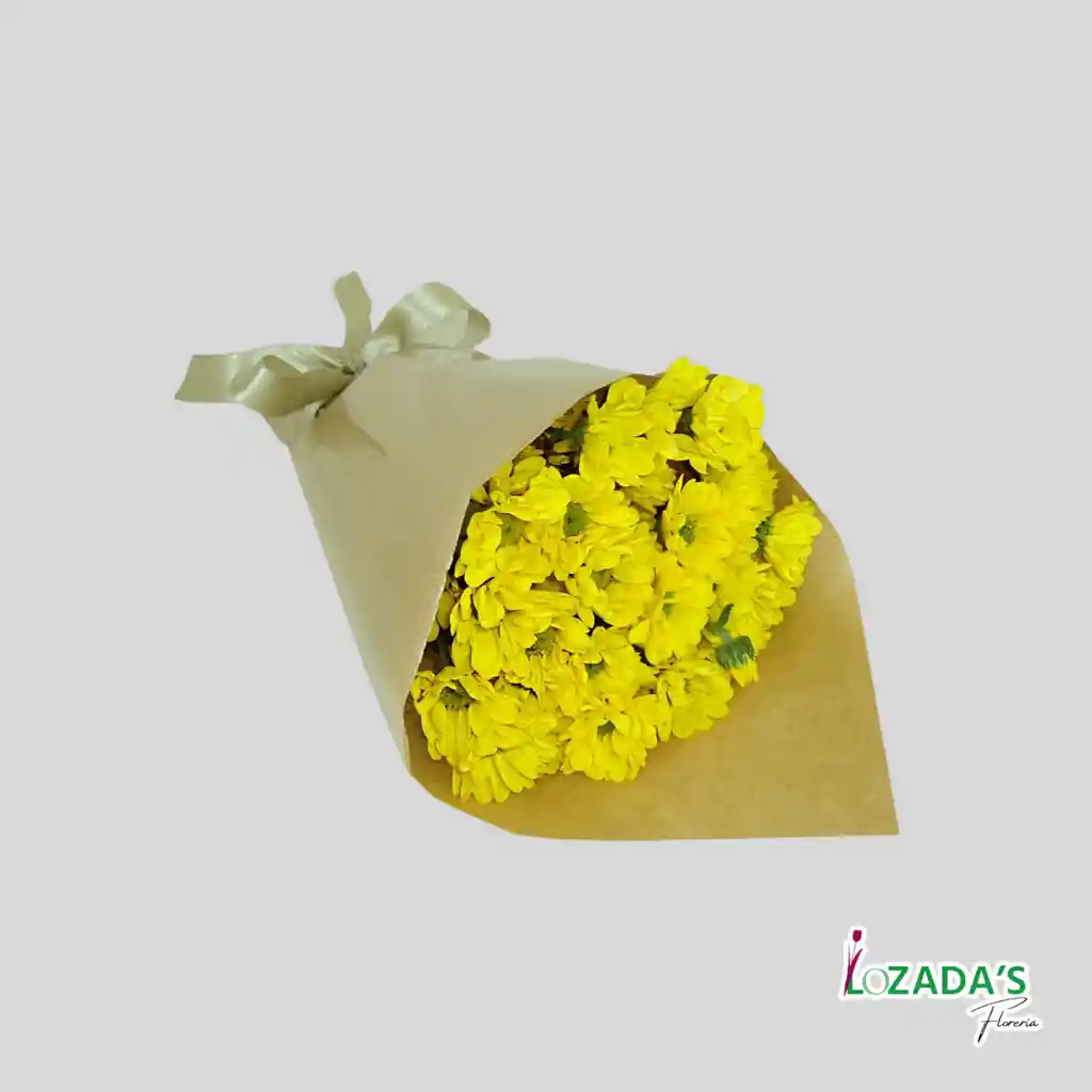 Este ramo incluye2 varas de margaritas Amarillas con gypsophila y verdes seleccionados, envuelto en fino papel floral.